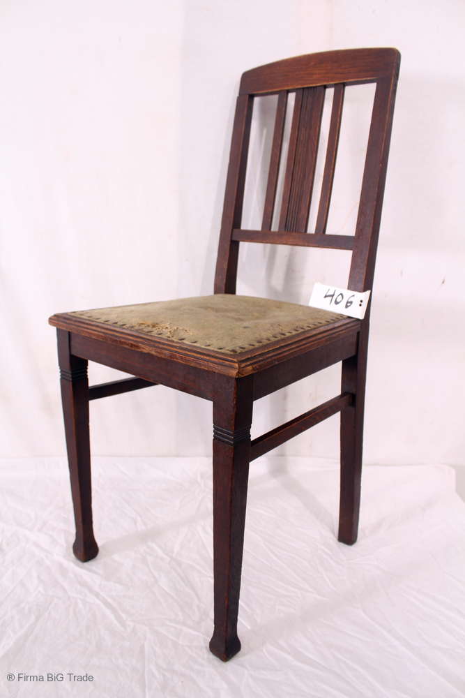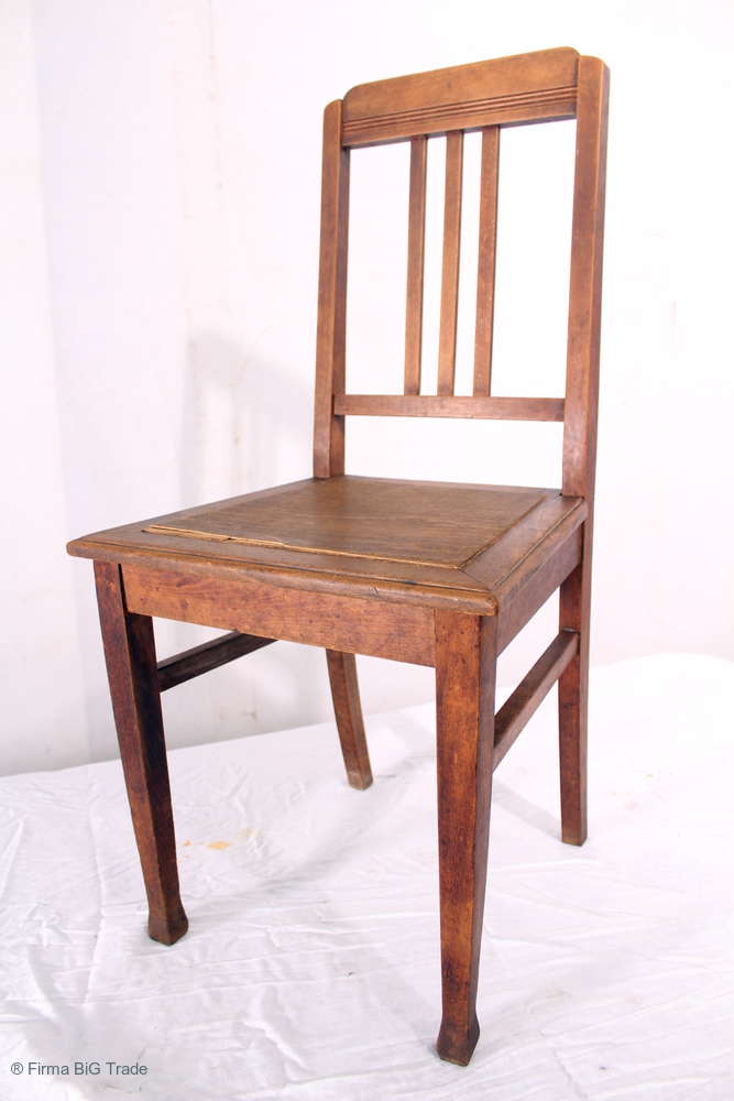 Antiker Jugendstil Holzstuhl Küchenstuhl Salonstuhl Eiche massiv Rillenverzierung 407