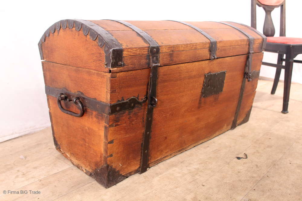 Museale Barock Truhe große Runddeckeltruhe / Eisenbeschläge Hochzeittruhe Eiche Massiv