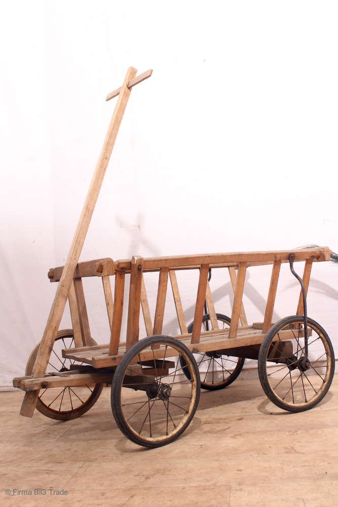 Antiker Leiterwagen Bollerwagen Heuwagen Holz-Griffstange Speichenräder