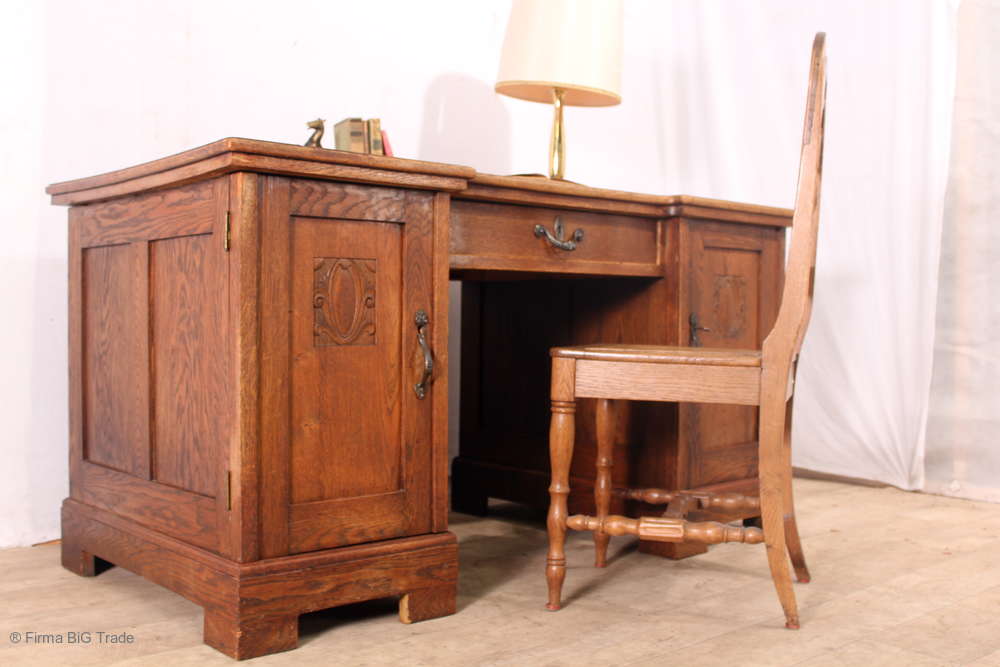 Prächtiger antiker Jugendstil Schreibtisch Bürotisch Chef-Schreibtisch Schubladen