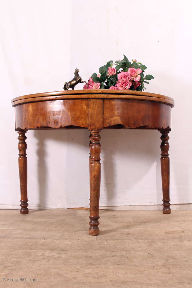 Antiker Halbrunder Gründerzeit Klapptisch Spieltisch Wandkonsole Drechselarbeiten Geheimschublade