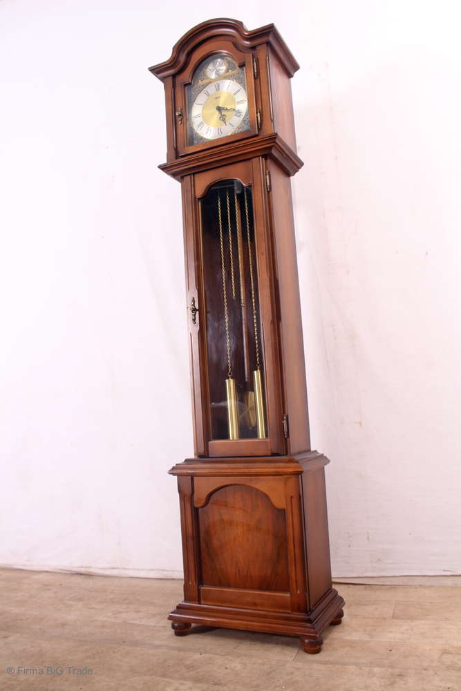 Zauberhafte TEMPUS FUGIT Standuhr Glockenuhr Holzgehäuse Pendeluhr 2 Gewichte Römische Zahlen