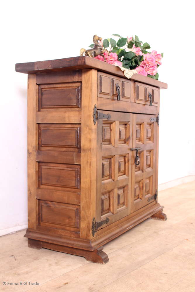 Schöne Kommode / Flurschrank / Mittelalter Stil / 2 Schubladen Kasettentüren Eisenbänder