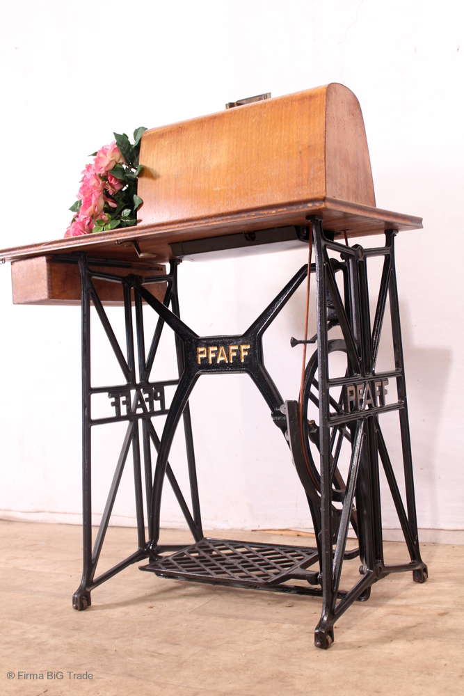 Antike PFAFF Nähmaschine Nähtisch mit Deckel Guss-Gestell mit Verzierungen