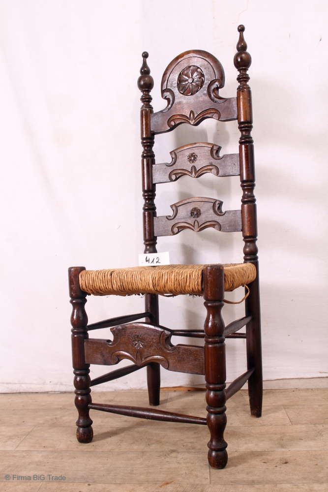 Schöner Mittelalter Stuhl Hochlehnstuhl Binsengeflecht Tafelstuhl Ritterstuhl zum Herrichten Nr. 412