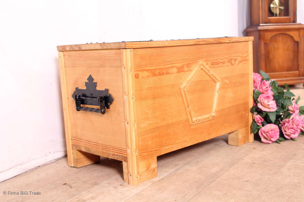 Schöne Kindertruhe Sitztruhe Landhaustruhe Küchentruhe Flurtruhe Massiv Holz Verzierte Griffe Eisenbänder