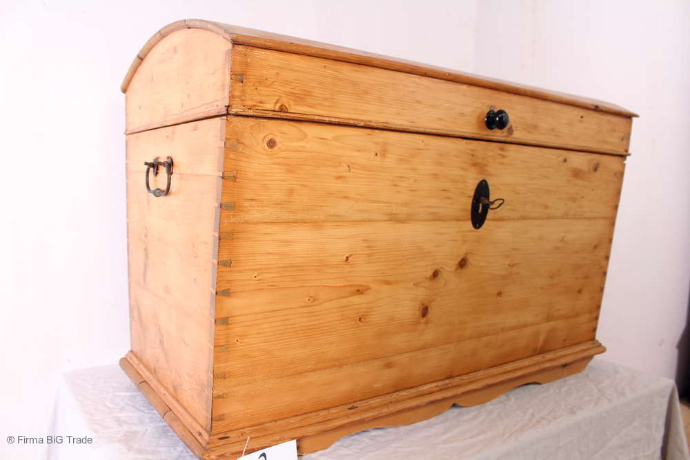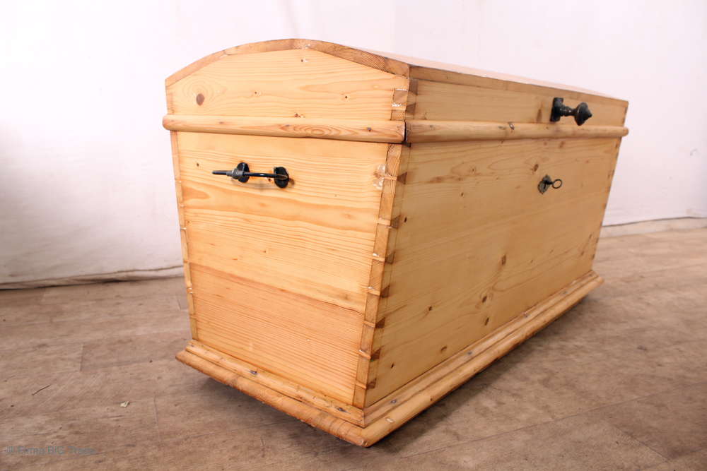 Große Antike Biedermeier Runddeckeltruhe Wäschetruhe Holztruhe Truhe Hochzeitstruhe Weichholz massiv Nr. 2