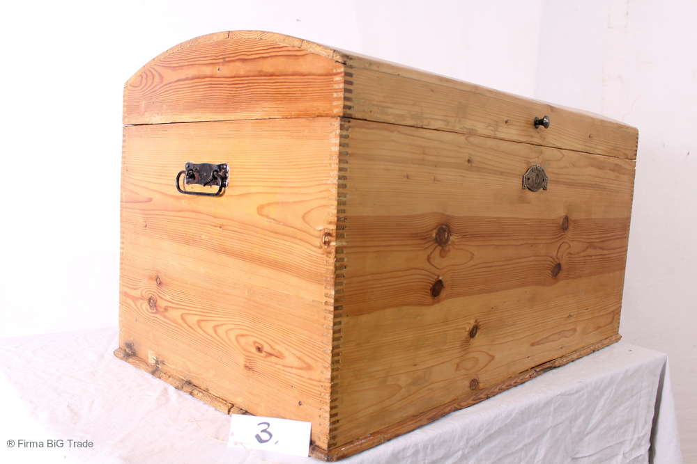 Große Antike Biedermeier Runddeckeltruhe Wäschetruhe Holztruhe Truhe Hochzeitstruhe Weichholz massiv Nr. 3