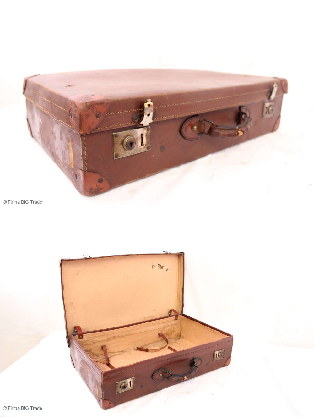 Antiker Oldtimerkoffer Reisekoffer Hartplatte Lederkoffer / Koffer Lederkappen / Antique travel suitcase