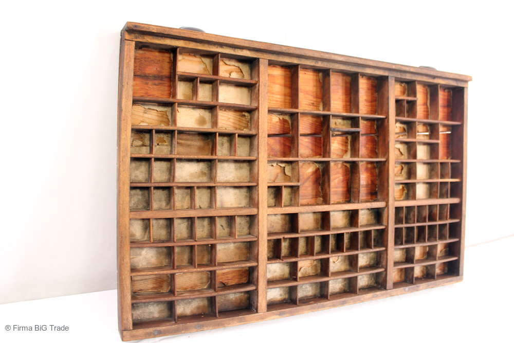 Antiker Setzkasten / Druckerei Schublade / Regal f. Zierobjekte / Griffe / Wandregal Viele Fächer