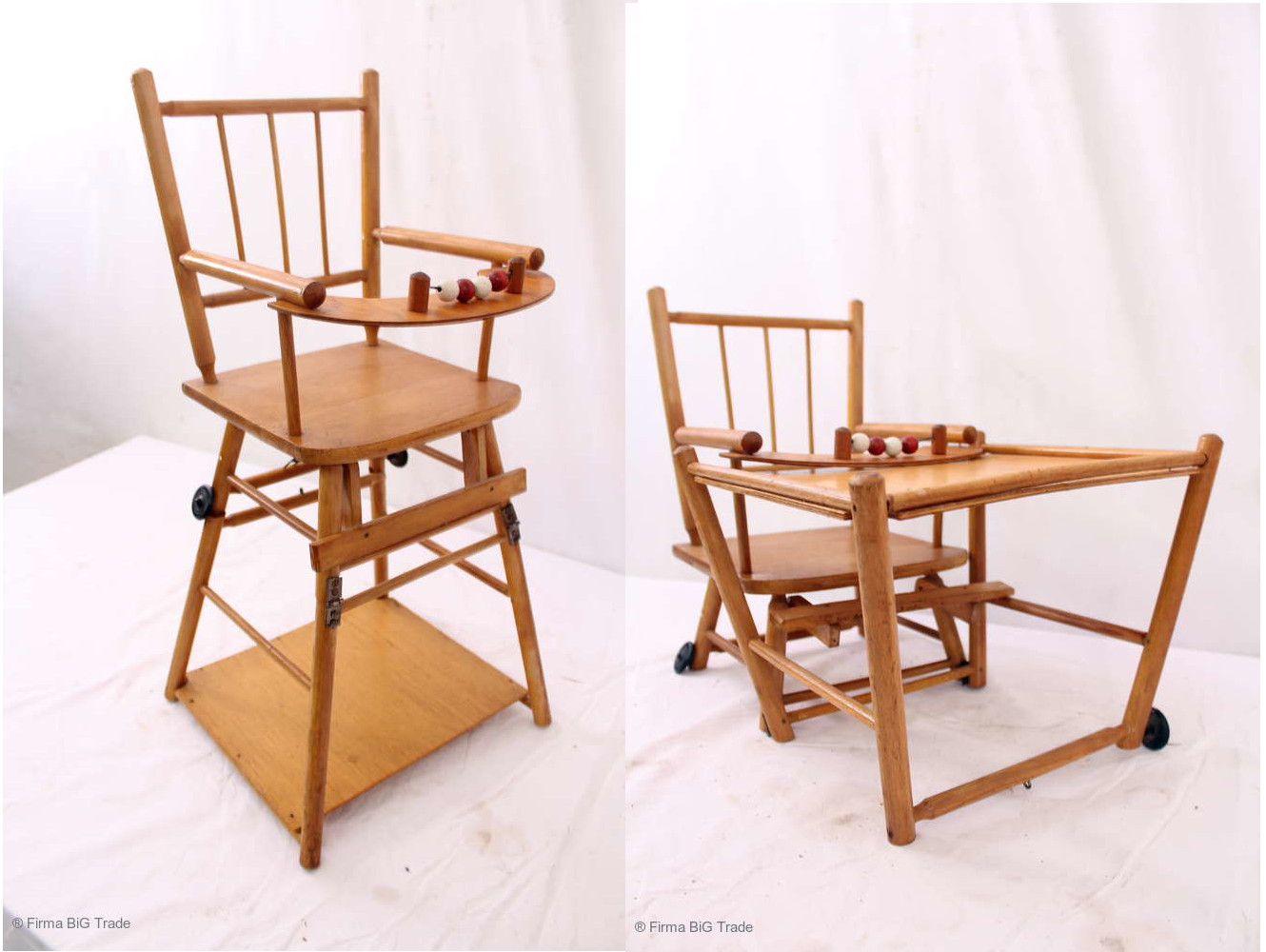 Wunderschöner nostalgischer Puppenhochstuhl Klappstuhl Umwandelbar Laufrad altes Spielzeug