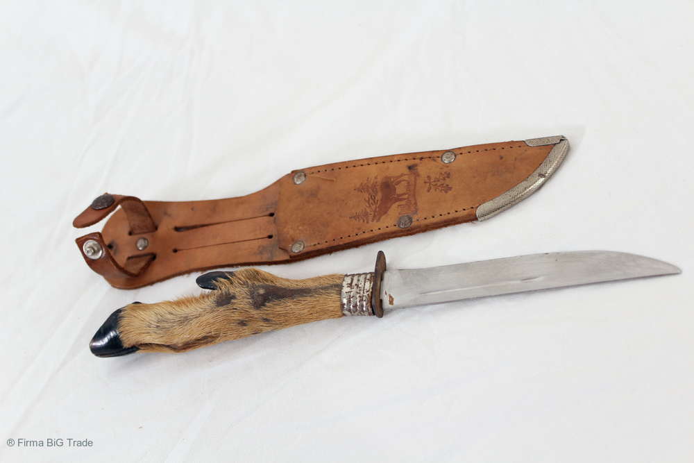 Schönes altes Jagdmesser Messer mit Rehfuß und Lederscheide nicht geschärft / Hunting Knife