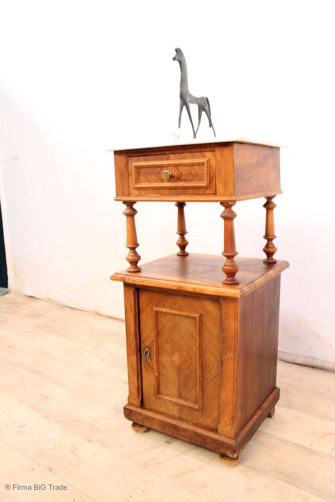 Zauberhafter antiker Gründerzeit Nachtschrank / Säulen Nachttisch / Beistelltisch / Marmor / Schublade / Wurzelholz / Nr