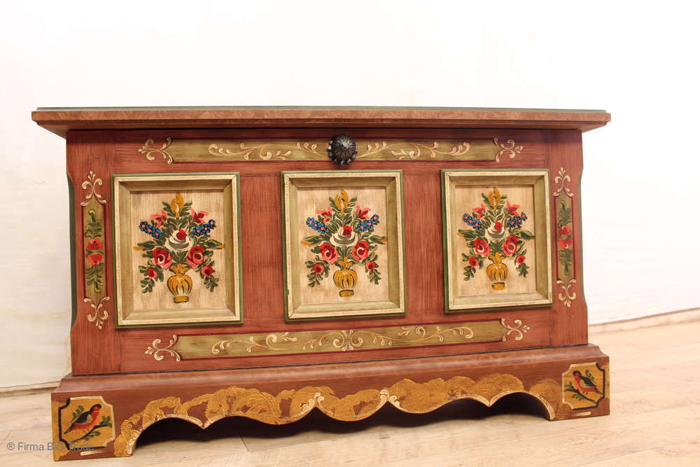 VOGLAUER Landhaus Schuhschrank Anno 1700 Truhe Flurbank Bauernmalereien Bauernmöbel