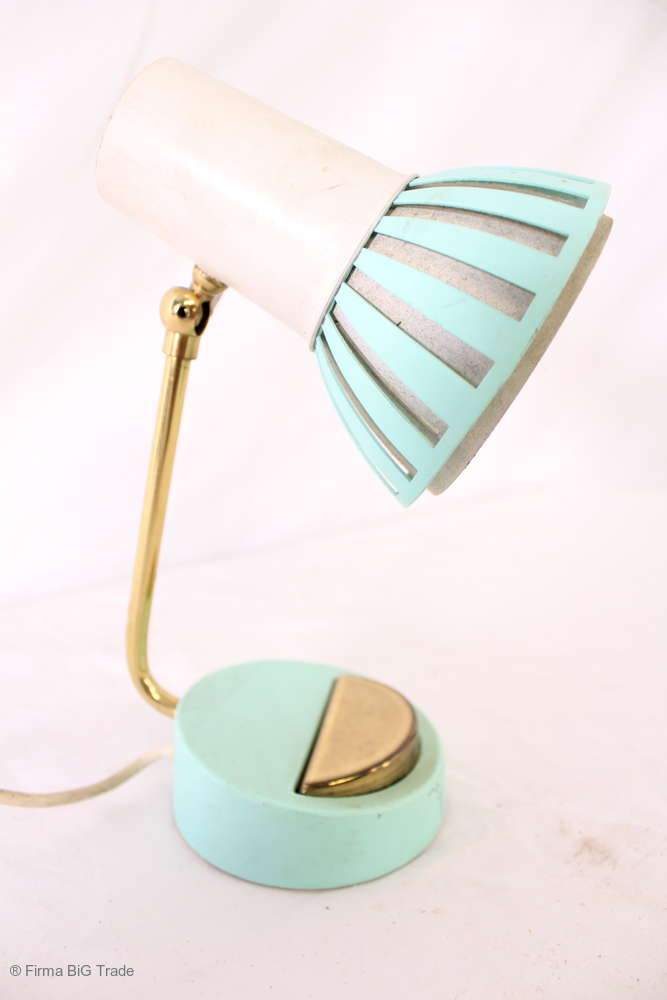 Retro! 70er Jahre Nachttischlampe Tischlampe Stehlampe breiter Schalter Blau-Weiss