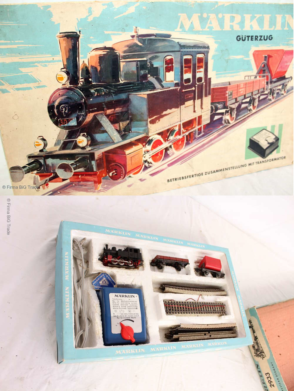 Selten! MÄRKLIN Güterzug 2933 in Originalverpackung! Lokomotive, 2 Güterwagons Trafo und Schiene