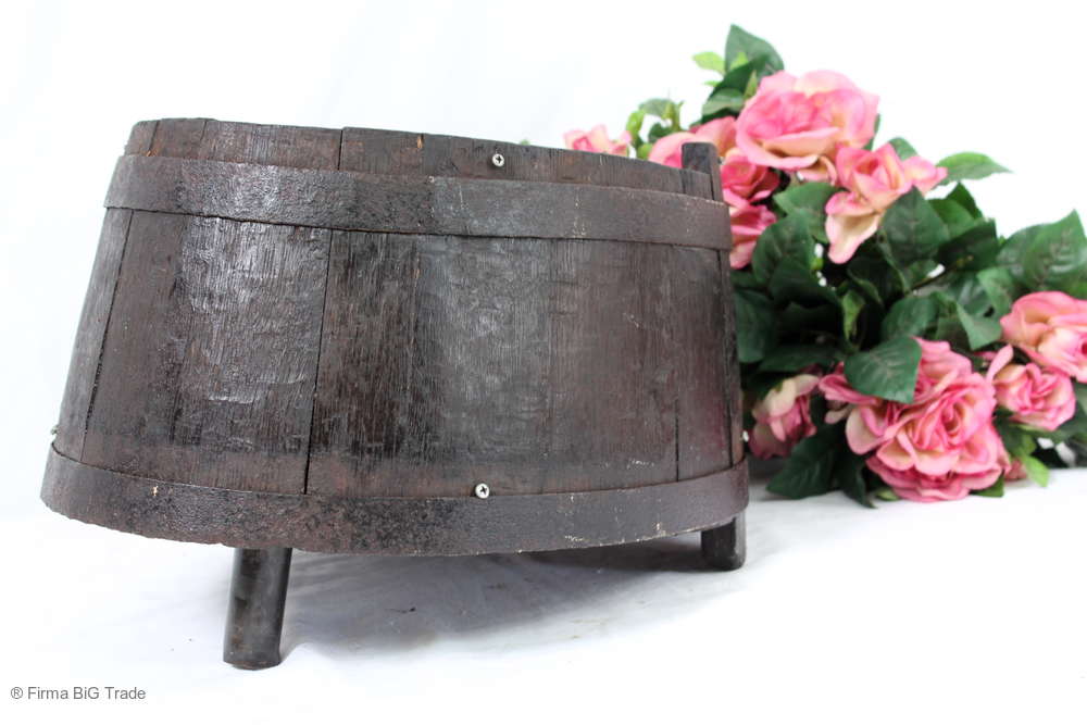 Antikes Holzfass Blumentopf / Blumenbett / Gartendekoration Holzschalle / Halbfass mit Eisenringen