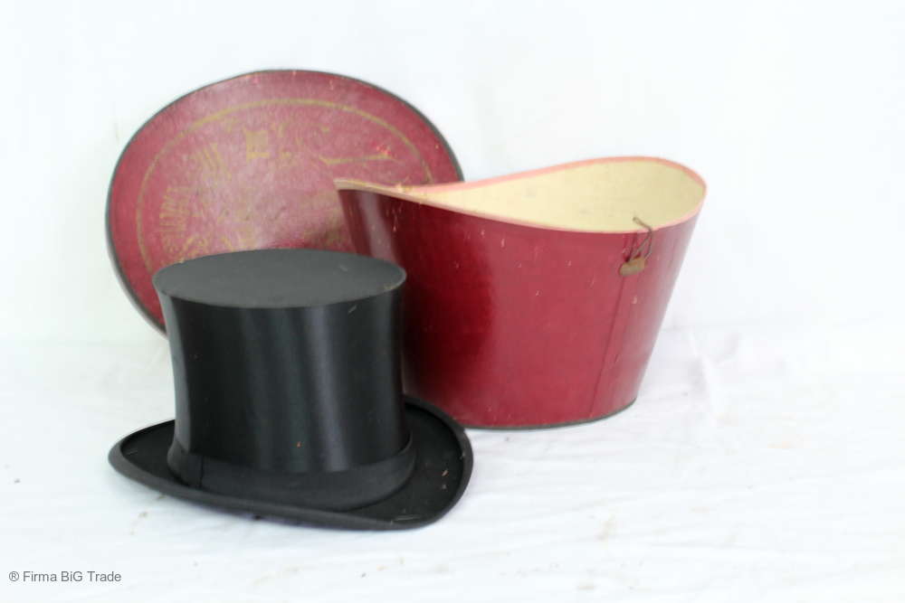 SELTEN! Original Antiker Zylinder Hut mit formschöner Trage-Schachtel Hutkiste