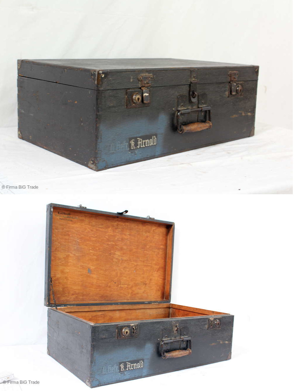 Arnolds Antiker Werkzeugkoffer Holzkoffer Oldtimerkoffer Transportkoffer Transportkiste Holzgriff