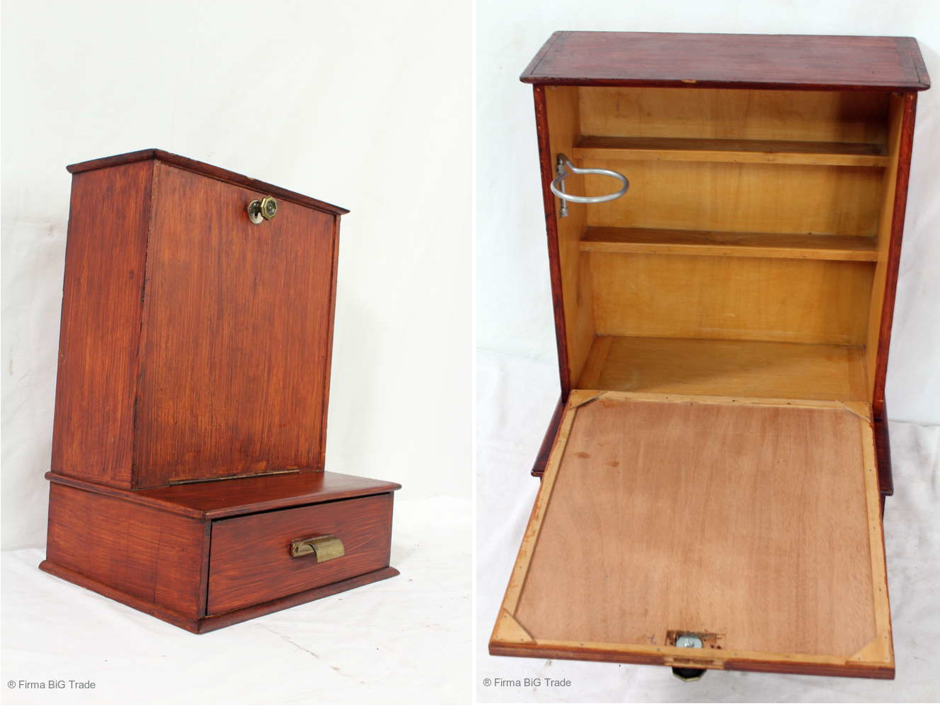 Schöner antiker Badschrank Medizinschrank Apothekenschrank Aufsatzschrank Schublade Klappdeckel