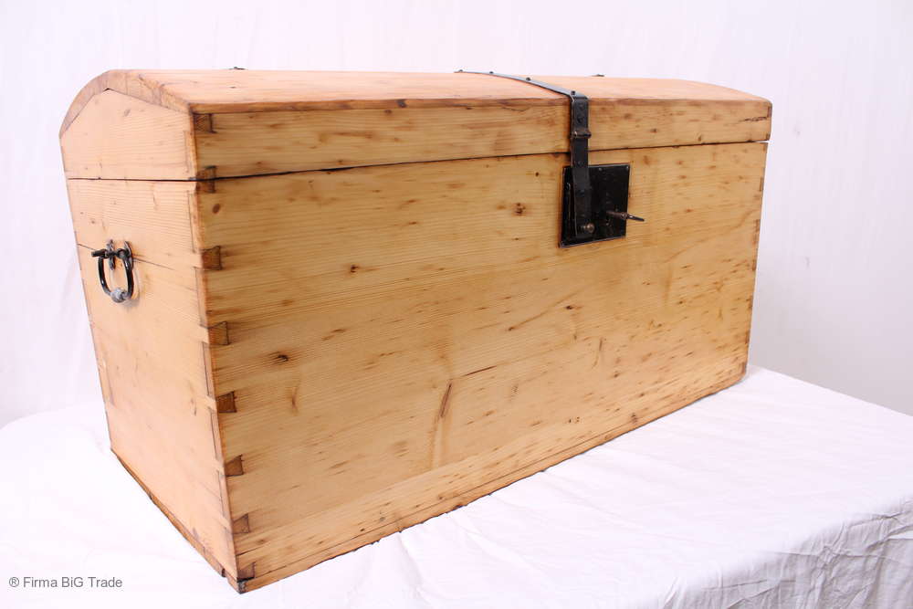 Zauberhafte Antike Biedermeier Runddeckeltruhe Wäschetruhe Holztruhe Hochzeitstruhe Eisenbeschläge Weichholz massiv Nr.