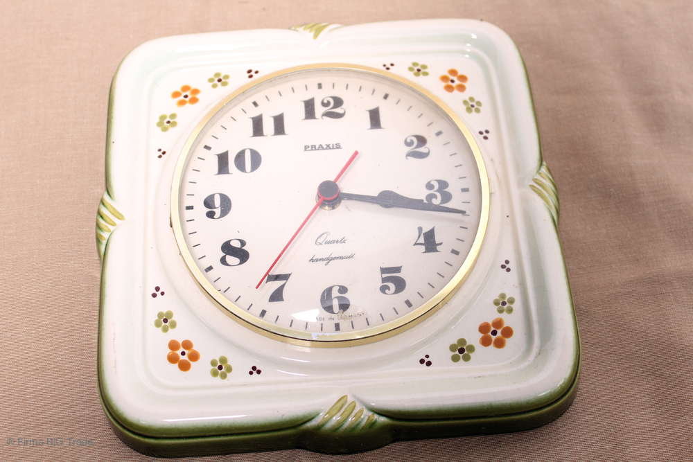 RETRO 70er Jahre PRAXIS Wanduhr Keramikuhr Küchenuhr / Shabby German Wall Clock Kitchen Clock Nr. 80