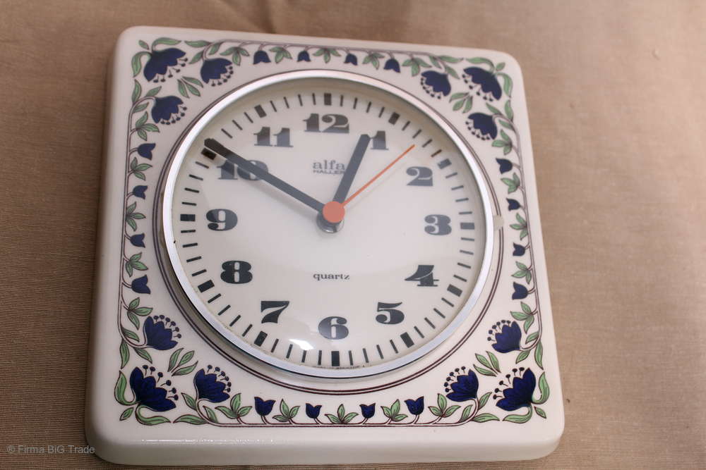 RETRO 70er Jahre ALFA Wanduhr Küchenuhr Blumenverzierung / Shabby German Wall Clock Kitchen Clock Nr. 86