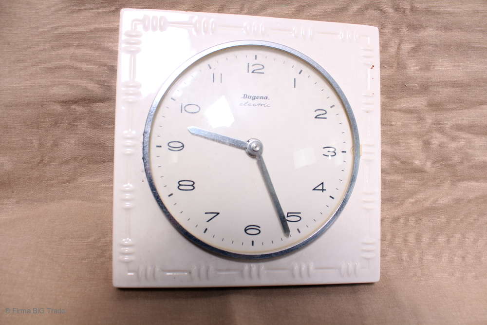 RETRO formschöne 60er Jahre DUGENA Wanduhr Keramikuhr Küchenuhr / Shabby German Wall Clock Kitchen Clock Nr. 90