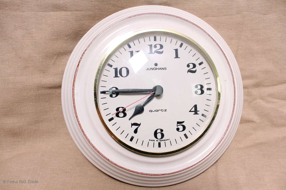 RETRO Runde 60er Jahre JUNGHANS Wanduhr Keramikuhr Küchenuhr / Shabby German Wall Clock Kitchen Clock Nr. 92