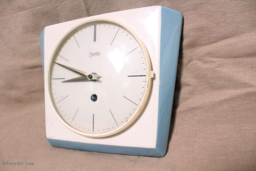 RETRO Antike ZENTRA Wanduhr Keramikuhr Küchenuhr Glashaube / Antique Wall Clock Kitchen Clock Nr. 95