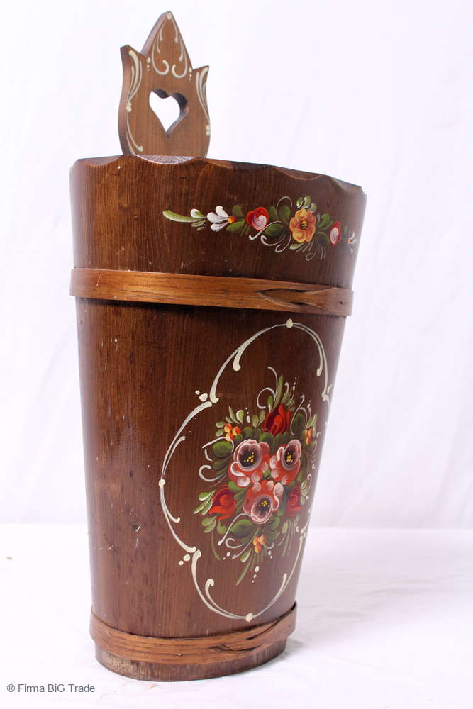 Zauberhaft Antiker Bauern Schirmständer / Holzeimer / Bauernmalereien / Nice German Umbrella Stand