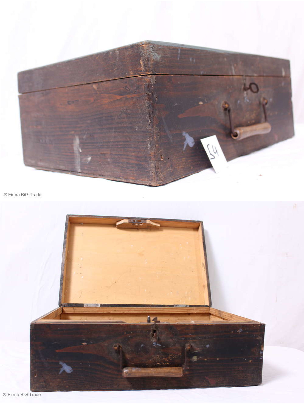 Schöner antiker Holzkoffer / Werkzeugkoffer / Wagen Koffer / Nice antique wooden case / Tool case 54