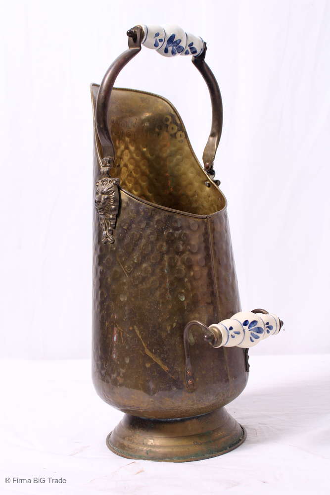 Formschöne antike Kohle Box / Kohle Schütter / Griff / Metall / Ofen Zubehör / Löwenköpfe verzierte Griffe