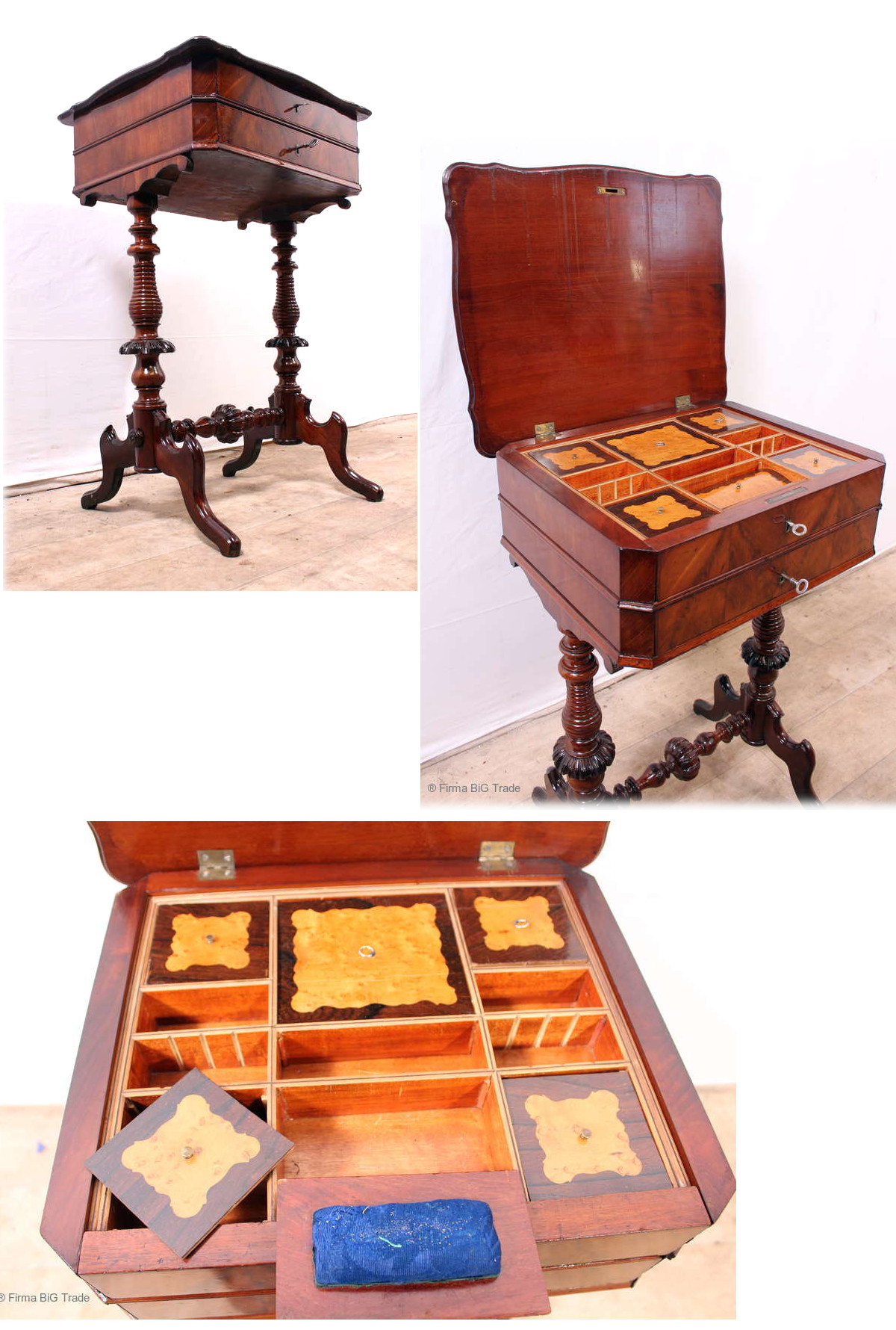 Zauberhafter antiker Gründerzeit Nähtisch Beistelltisch Schubladen Intarsien Arbeitstisch Damentisch / Nr. 18