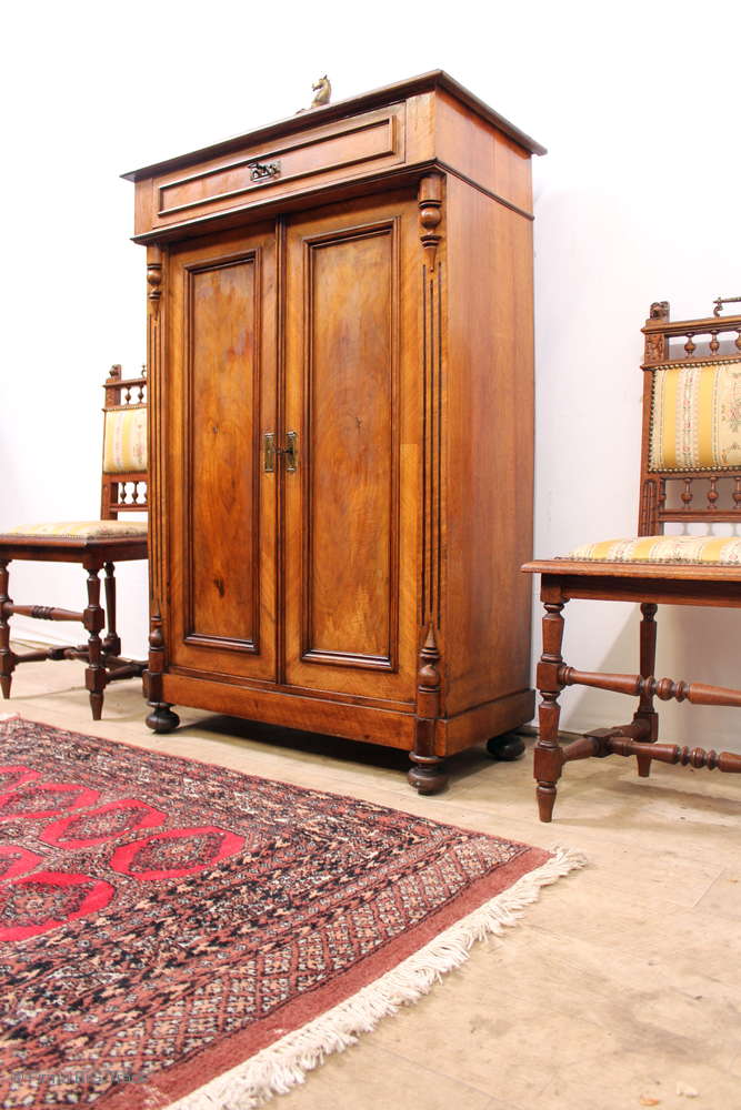 Ausgefallener antiker Jugendstil Schrank Kleiderschrank Keilschrank Dielenschrank 2 Schubladen Verzierungen