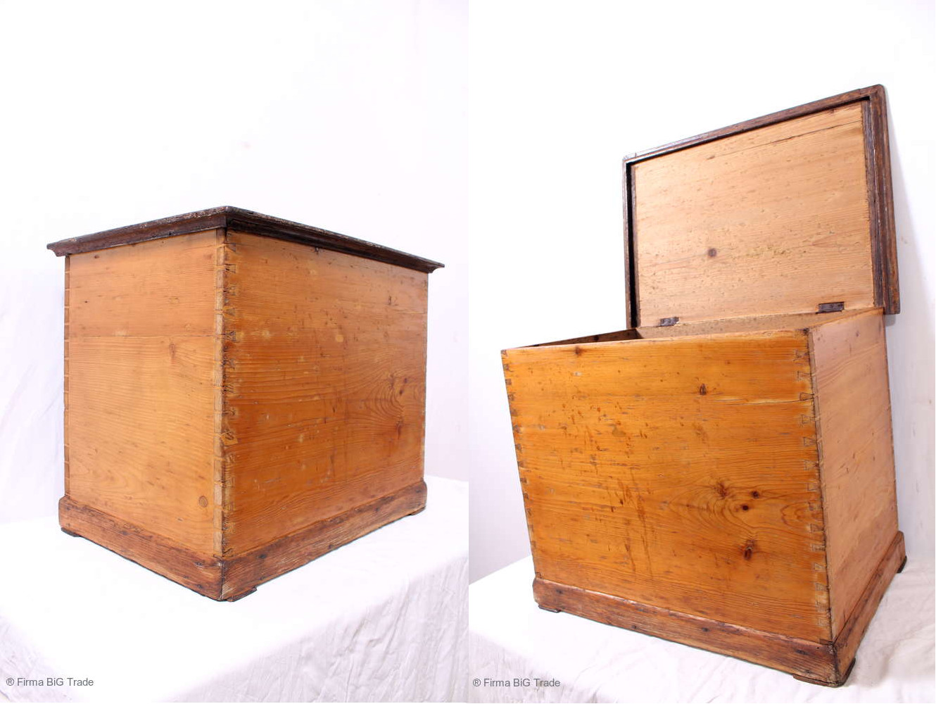 Antike Landhaus Küchentruhe Flachdeckel-Truhe Sitztruhe Holztruhe Vorratstruhe Weichholz massiv