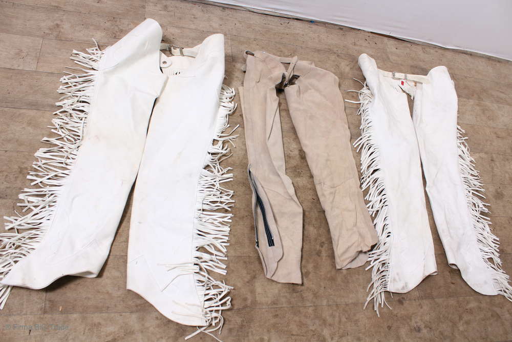 3 Leder Chaps Cowboy Hosen Reiter Lederhosen Weiß / Beige Rodeo Lederchaps Lederhose Ledergürtel