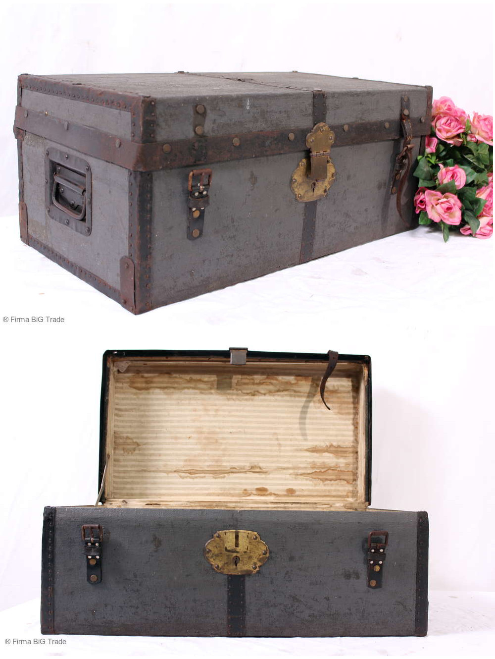 Antike Reisetruhe Überseetruhe Offizier Truhe Oldtimer Koffer Droschkentruhe Kutscher Truhe
