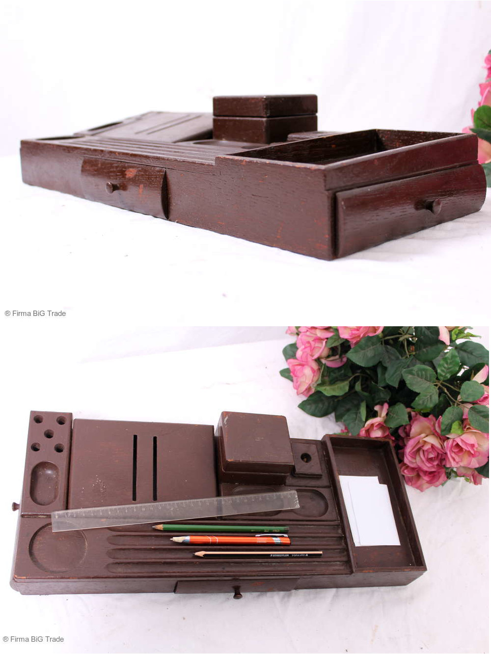 Seltener antiker Reisesekretär Schreibset Schreibzeug Behälter Schreiberpult Tintenhalter Schreibtischauflage