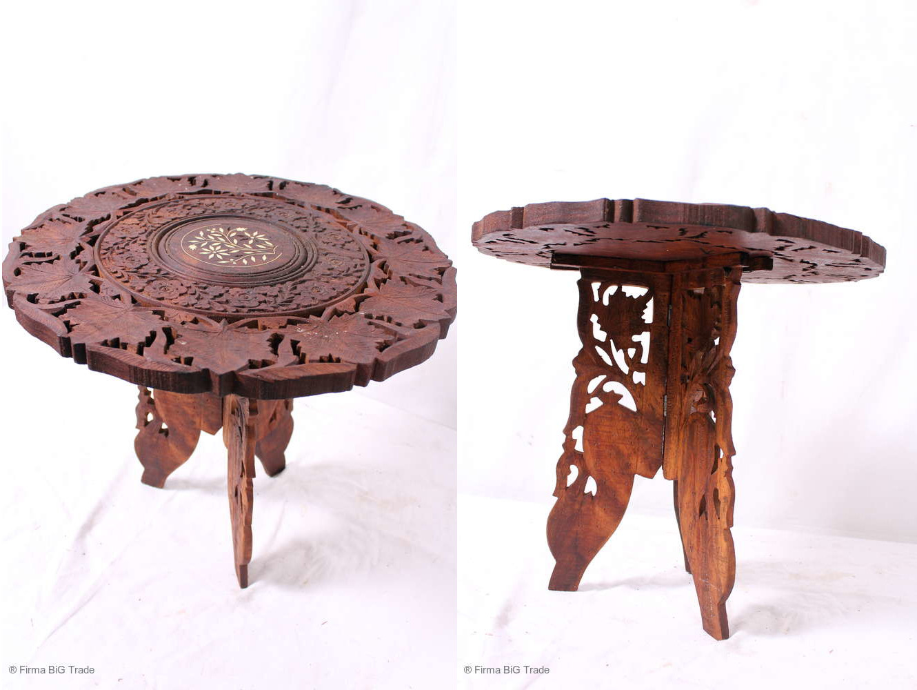 Wunderschöner Teetisch Beistelltisch Kaffeetisch detailreiche Schnitzereien Einlegearbeiten 2teilig