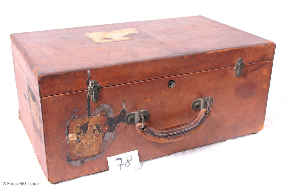 Antiker Oldtimerkoffer Reisekoffer Hartplatte Koffer Albert Rosenhein Berlin Nr. 77 / Antique travel suitcase