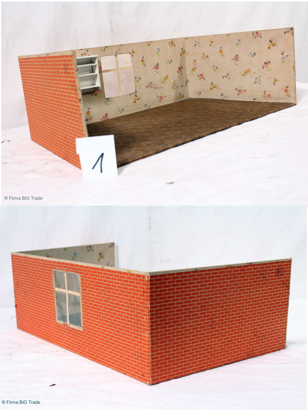 Schöne 60er Puppenstube / Puppenzimmer / Puppenhaus m. Fenster und Regal Wandtapete / Nr. 1