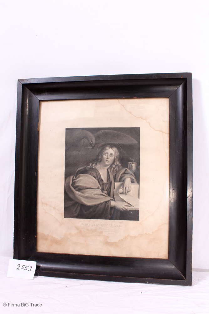 Großer Antiker Jugendstil Holzrahmen / Bilderrahmen / SAINT JEAN EVANGÉLISTE / Antiker Druck / NR. 2559