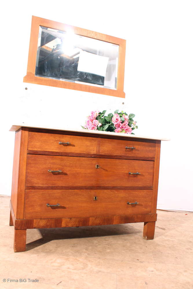 Antiker Jugendstil Waschtisch / Kommode / Spiegelaufsatz / Spiegelkommode / Marmorplatte 4 Schubladen