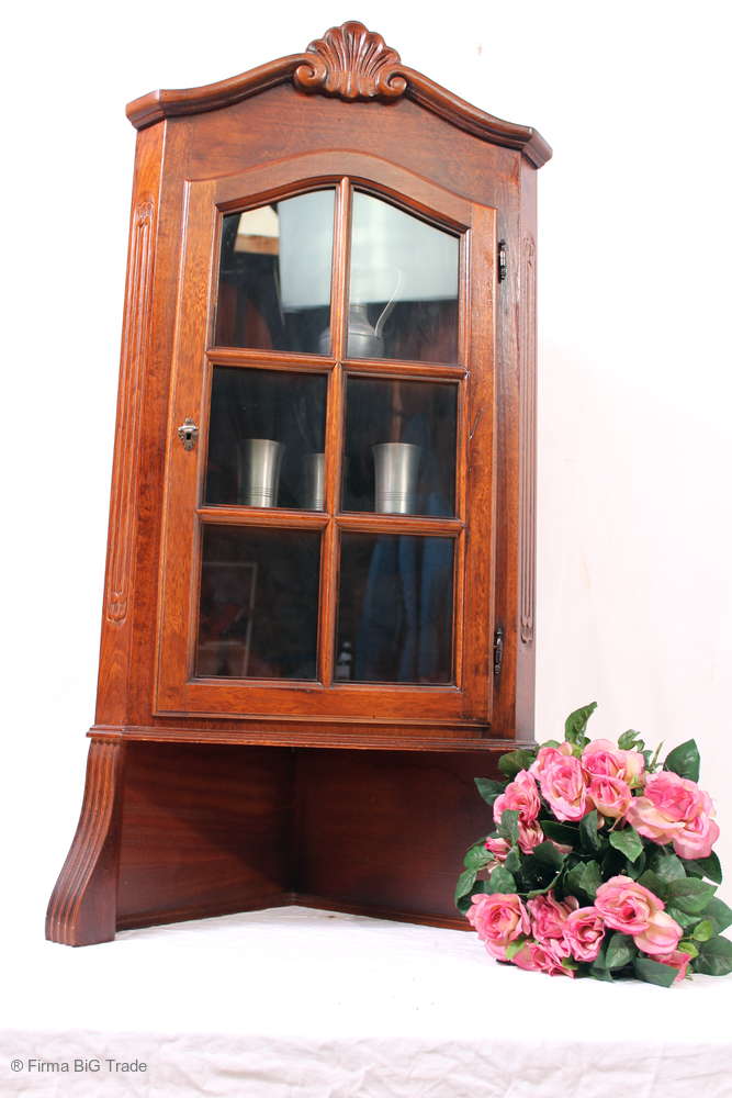 Zauberhafte Eckschrank Aufsatzschrank Vitrine Eckvitrine Glastür Schnitzereien