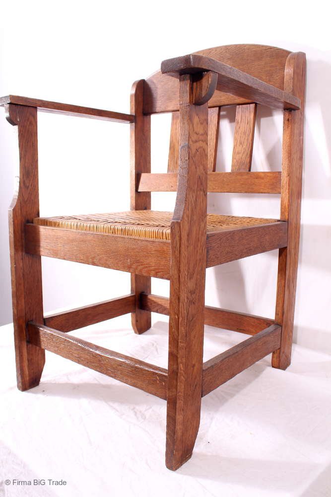 Antiker Armlehnstuhl Schreibtischstuhl Holzstuhl Eiche massiv Sitzgeflecht