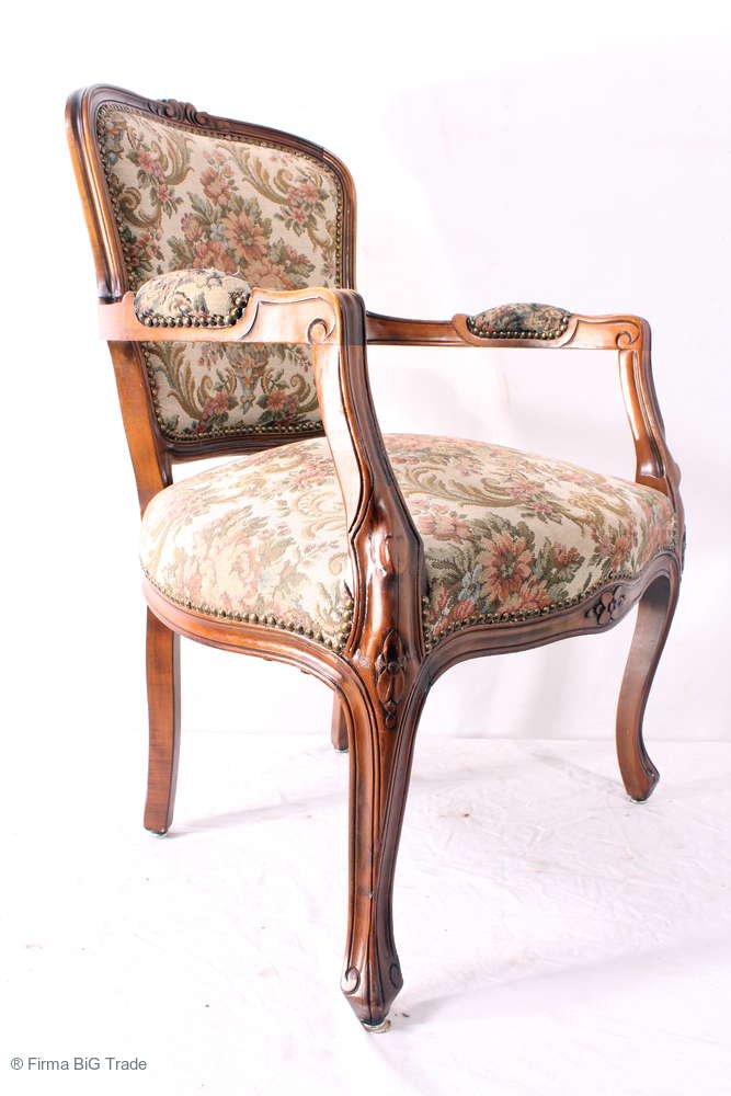Wunderschöner Armlehnstuhl Barock Stil Chippendale Goblin Stoff Schnitzereien / 3 vorhanden / Nr. 492