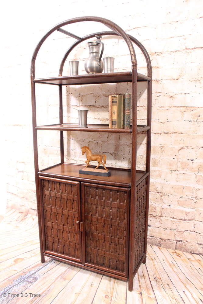 Imposantes Standregal Rattan Regal Bambusregal Kolonial Stil Bücherregal Regal / Wohnwand Flügeltüren