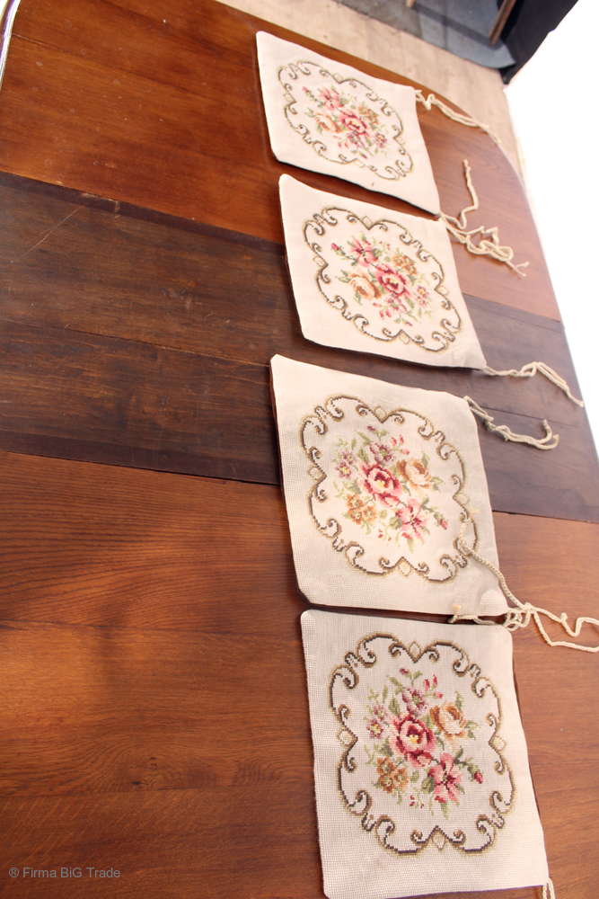 4 wunderschöne alte Sitzkissen für antike Stühle / Stuhl Kissen Blumen gestickt / Hand Stickereien / Rosen