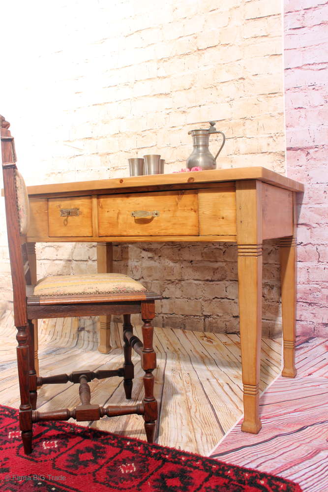 Wunderschöner antiker Jugendstil Gesindetisch m. 2 Schubladen Arbeitstisch Schreibtisch Küchentisch Massivholz